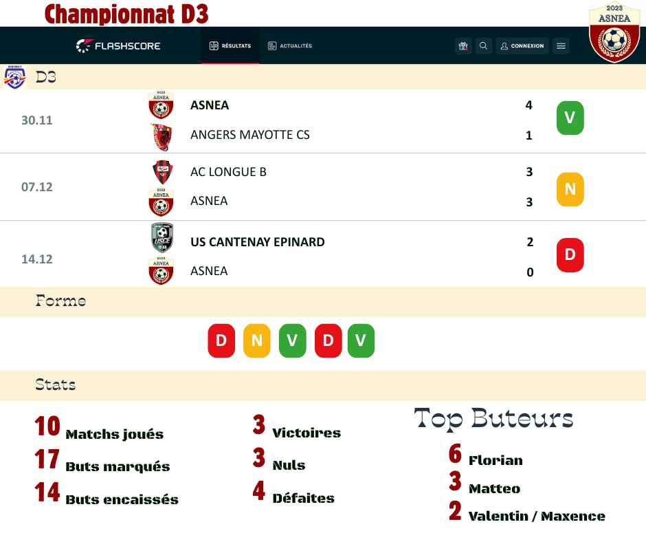 Bilan Mi-Saison Seniors A ![]()