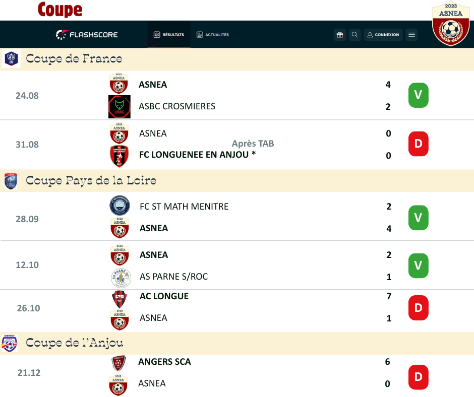 Côté Coupe, l'équipe est encore engagée en Challenge de l'Anjou ![]()